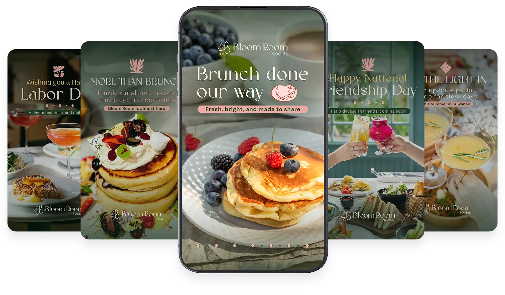 Follow Bloom Room on social media and bring our vibe to your feed. Discover fresh flavors, behind the scenes moments and the latest happenings. Join our community and share the experience wherever you are.